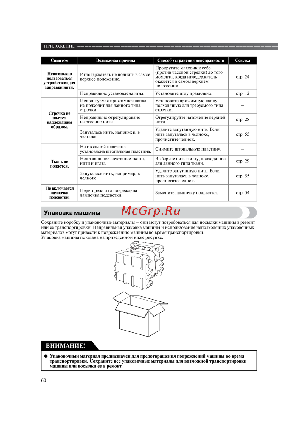 Brother Comfort 15 — как правильно упаковать машину для транспортировки и ремонта [61/62]