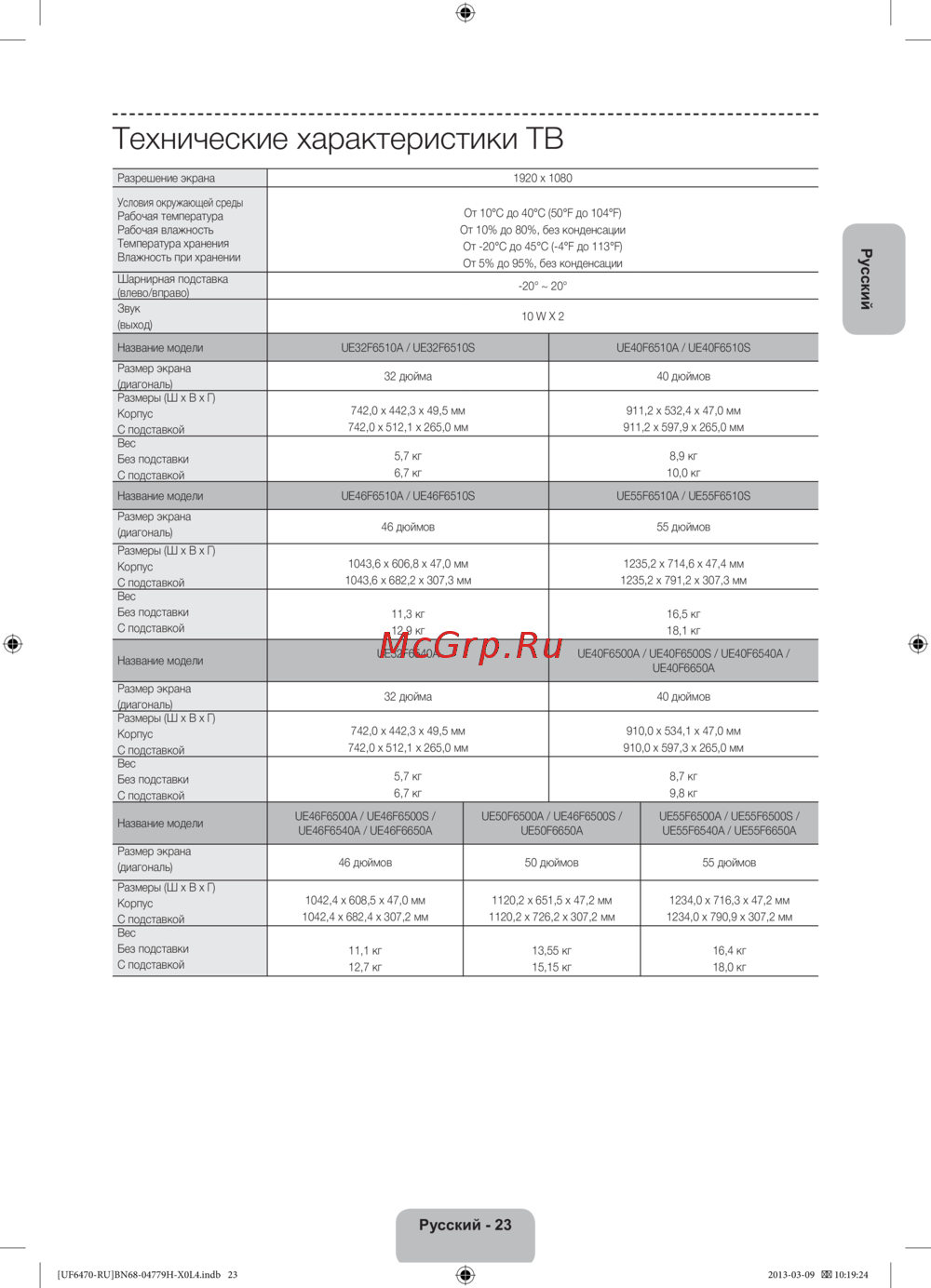 Samsung UE32F6540AB [23/25] Технические характеристики
