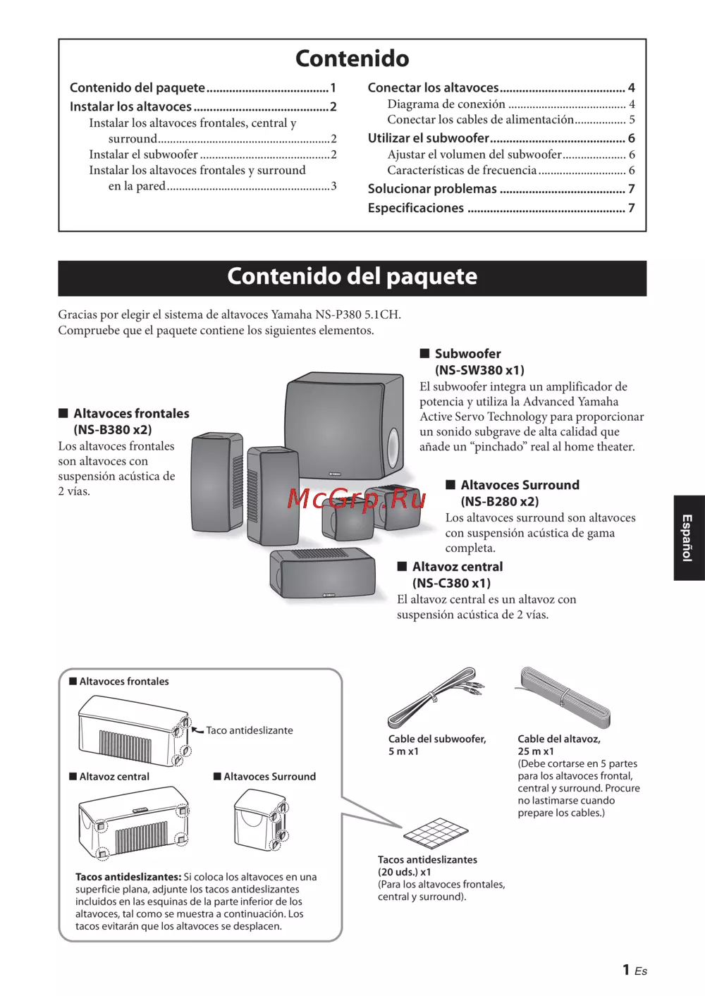 Yamaha NS-P380 [55/84] Contenido del paquete