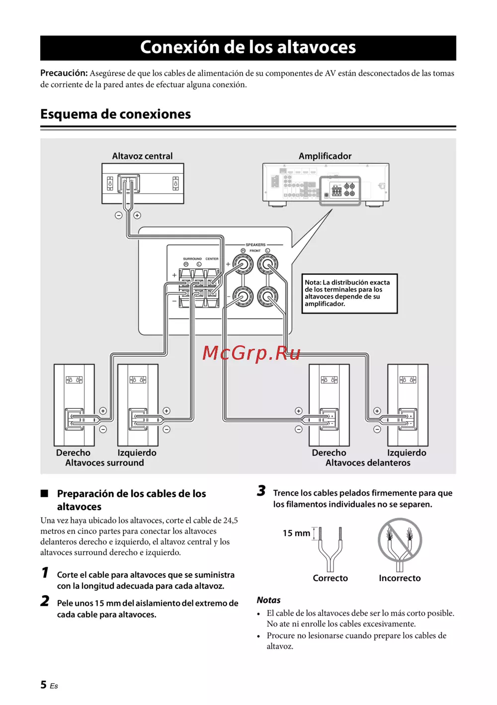 - Sujeción x 2 para el altavoz central cable de altavoz 24 5 m x 1 p.15