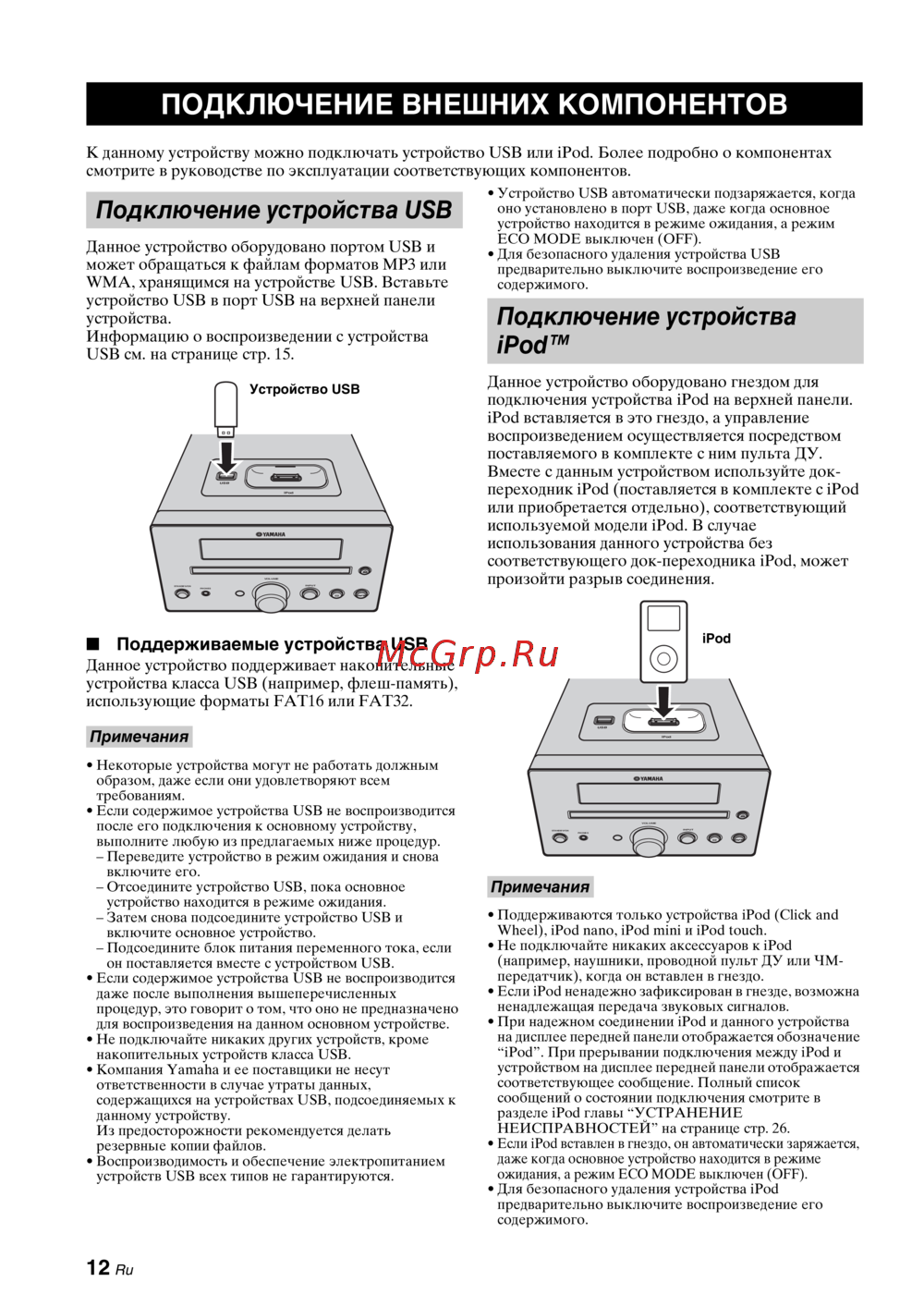 ![Yamaha CRX330 [14/34] Подключение устройства usb](/views2/1927294/page14/bge.png)