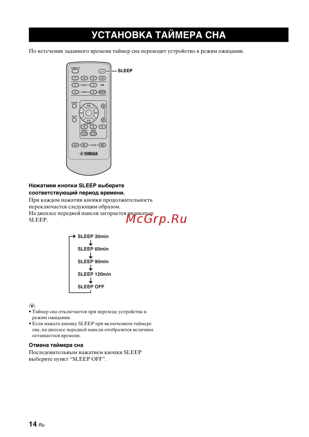 ![Yamaha CRX330 [16/34] Установка таймера сна](/views2/1927294/page16/bg10.png)