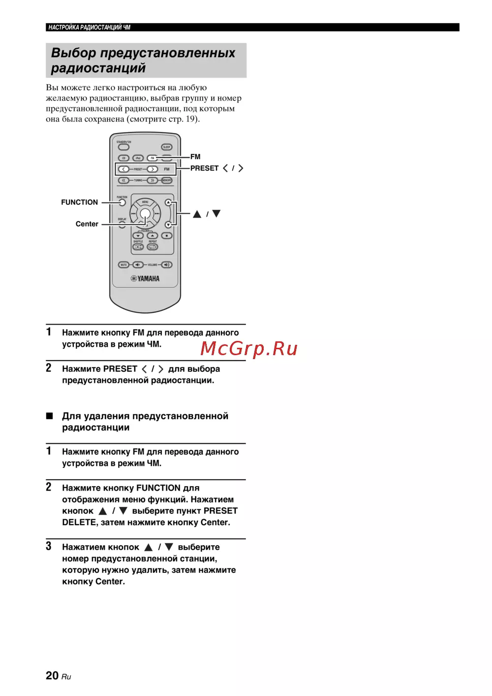 Yamaha CRX330 [22/34] Для удаления предустановленной радиостанции