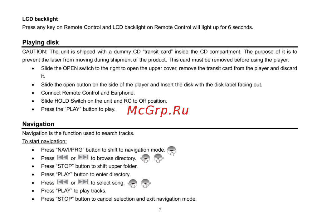CAUTION: The unit is shipped with a dummy CD transit card inside the CD compartment. The purpose of it is to