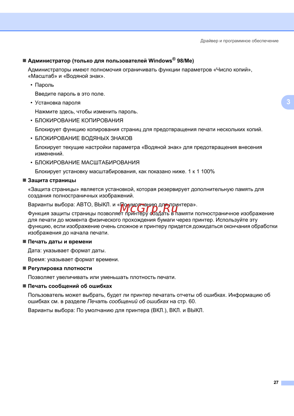 Brother HL-2035R — управление настройками принтера: защита страниц, ограничение копирования и ПО [34/94]