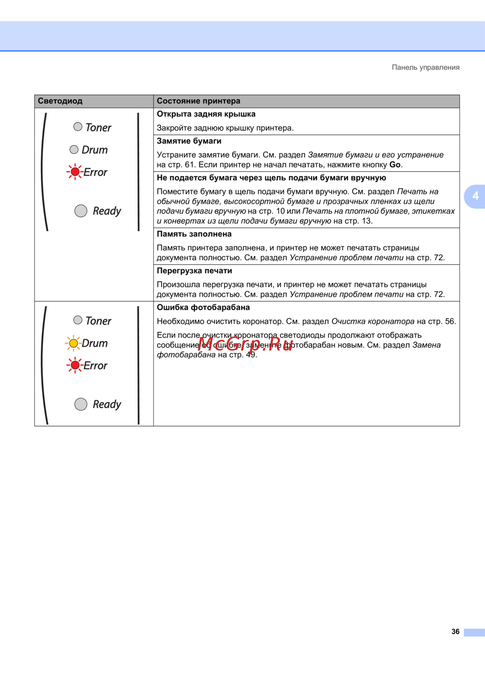 - Сообщение замените барабан p.55