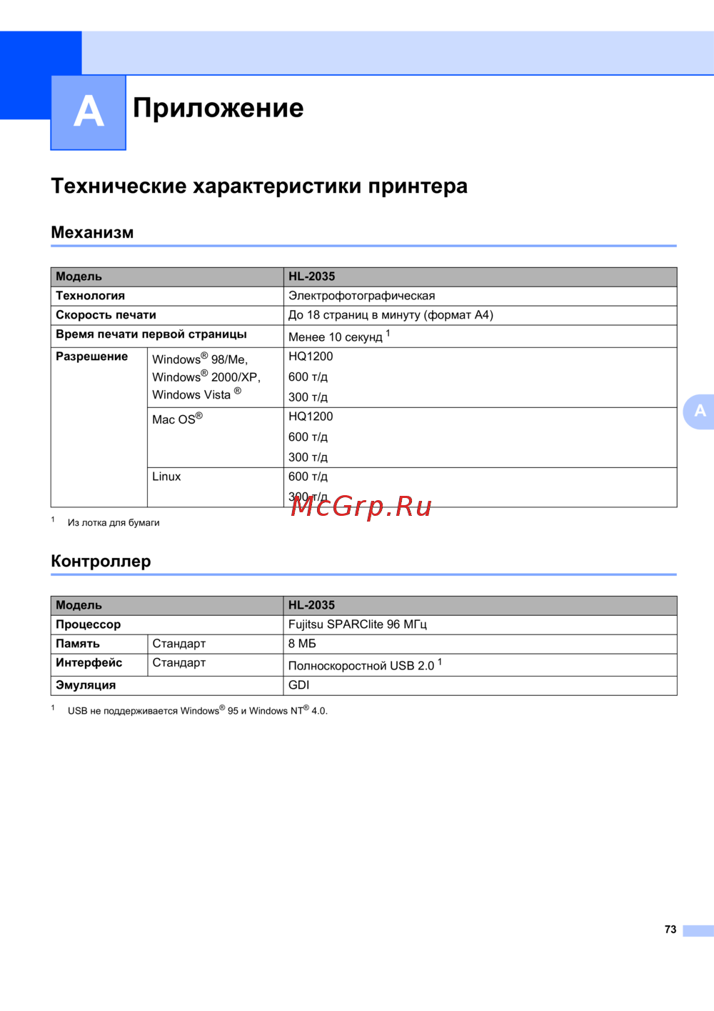 Brother HL-2035R — технические характеристики принтера: скорость, разрешение и интерфейсы [80/94]