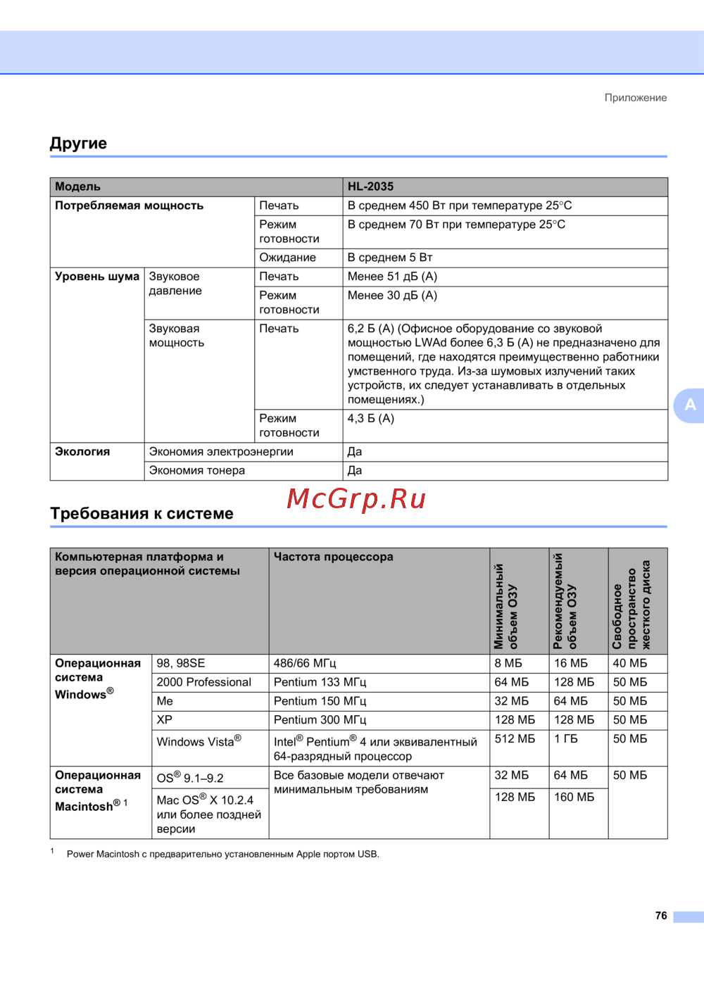 Brother HL-2035R — требования к системе для офисного оборудования и печати [83/94]