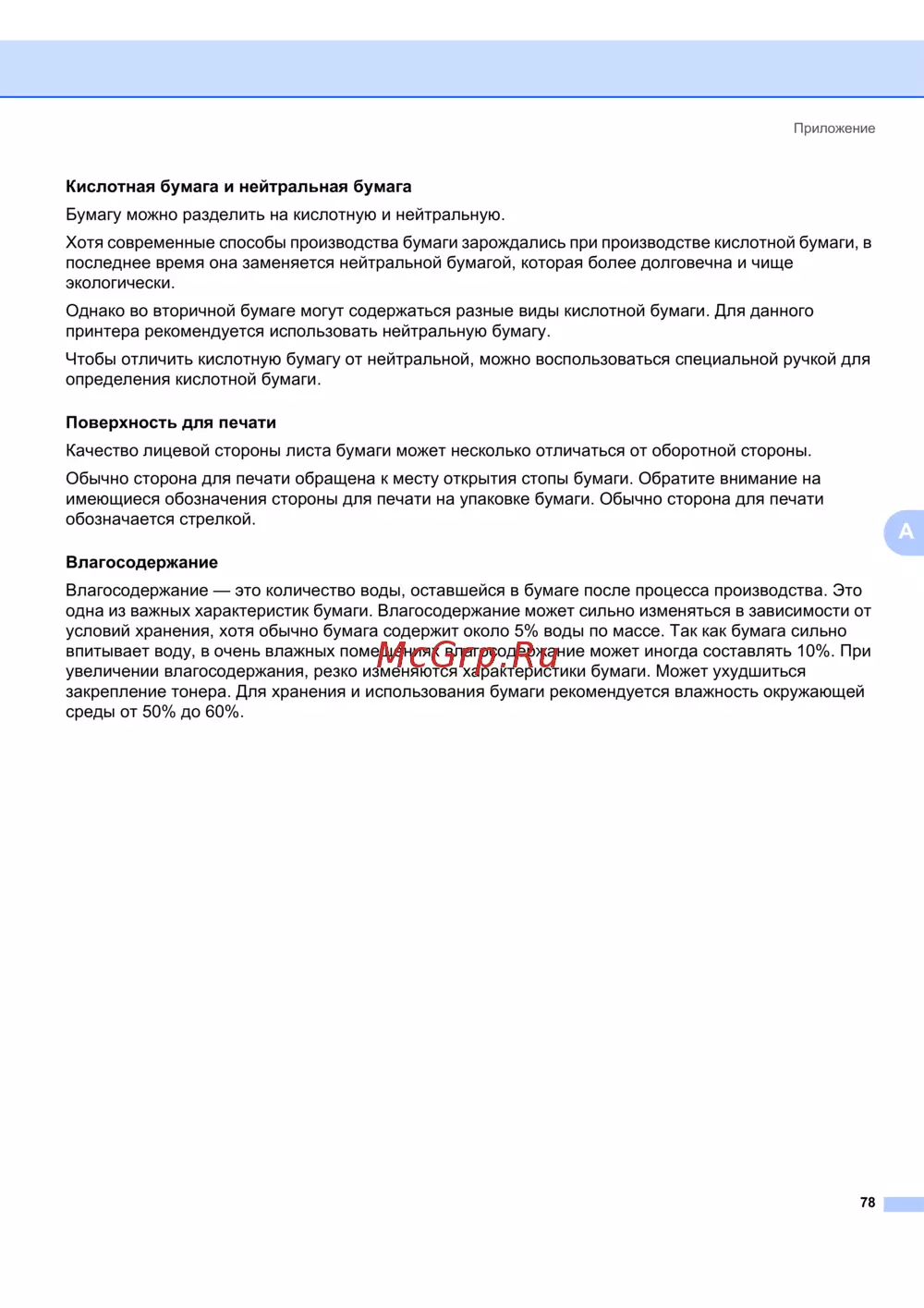 закрепление тонера. Для хранения и использования бумаги рекомендуется влажность окружающей