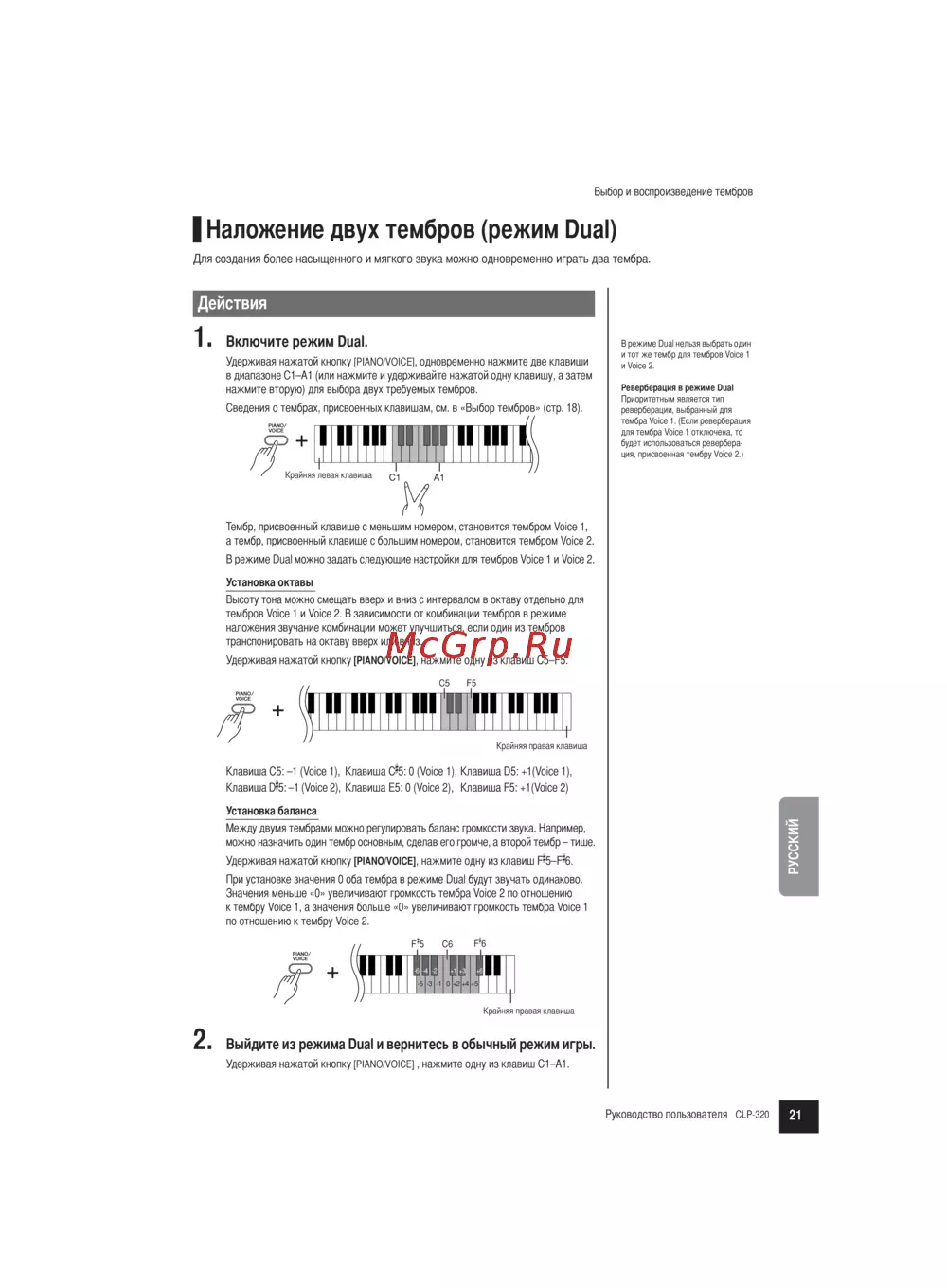 а тембр, присвоенный клавише с большим номером, становится тембром Voice 2.