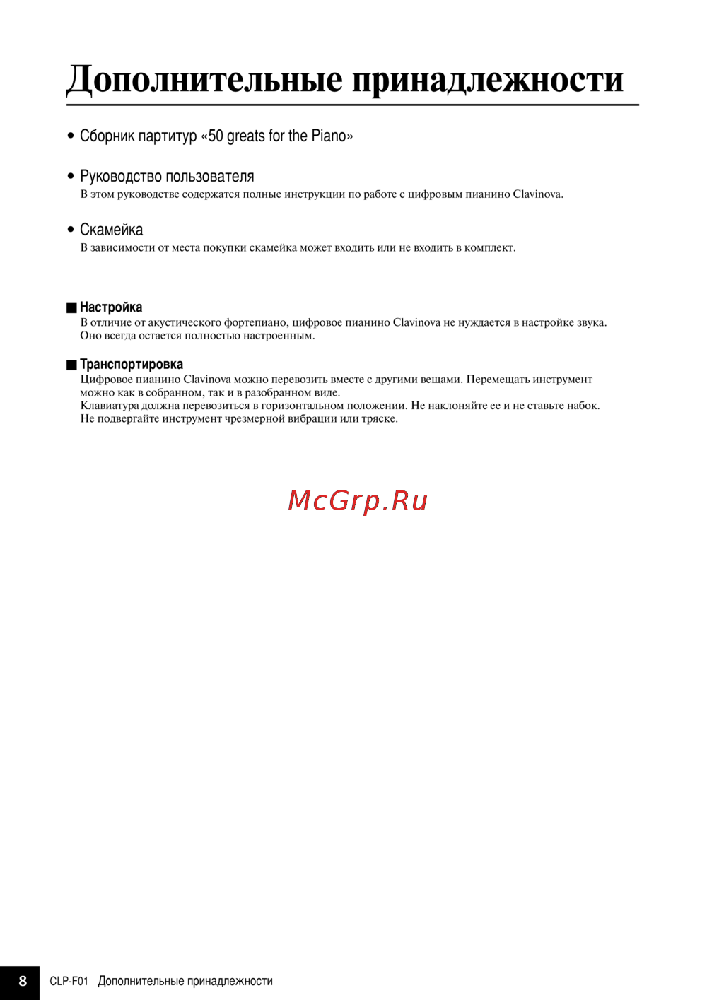 ![Yamaha CLP-F01 Clavinova [8/80] Дополнительные принадлежности](/views2/1928182/page8/bg8.png)