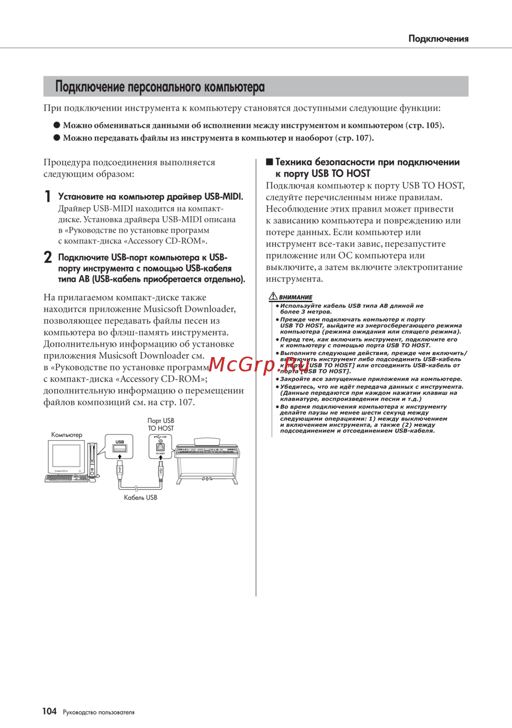 Yamaha YDP-V240 ARIUS [104/150] Подключение персонального компьютера