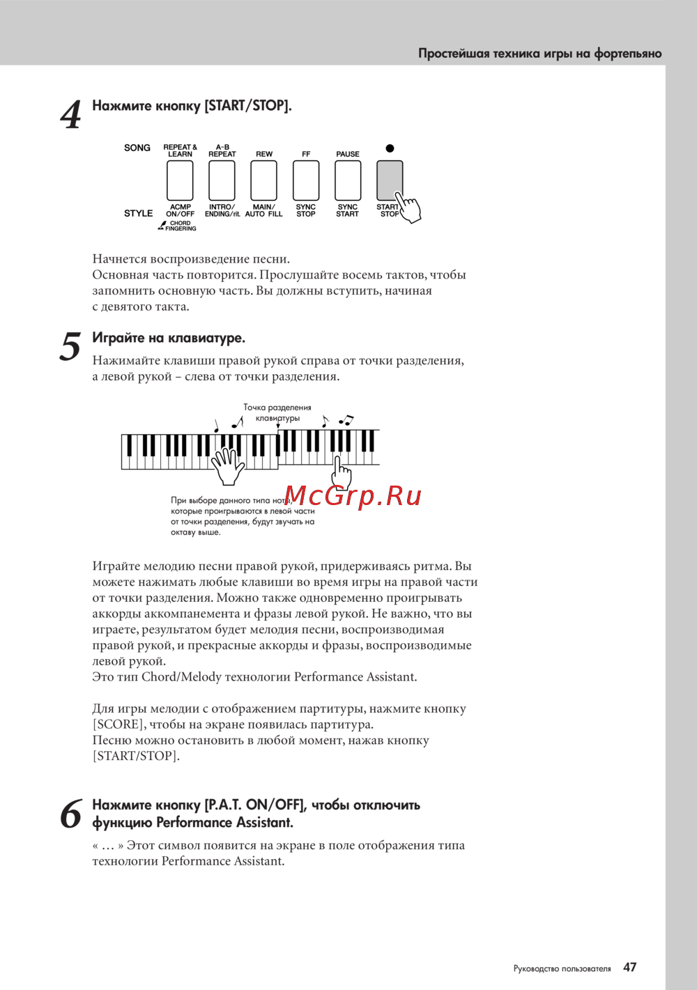 - Игра разными тембрами правой и левой рукой split разделение тембров p.19