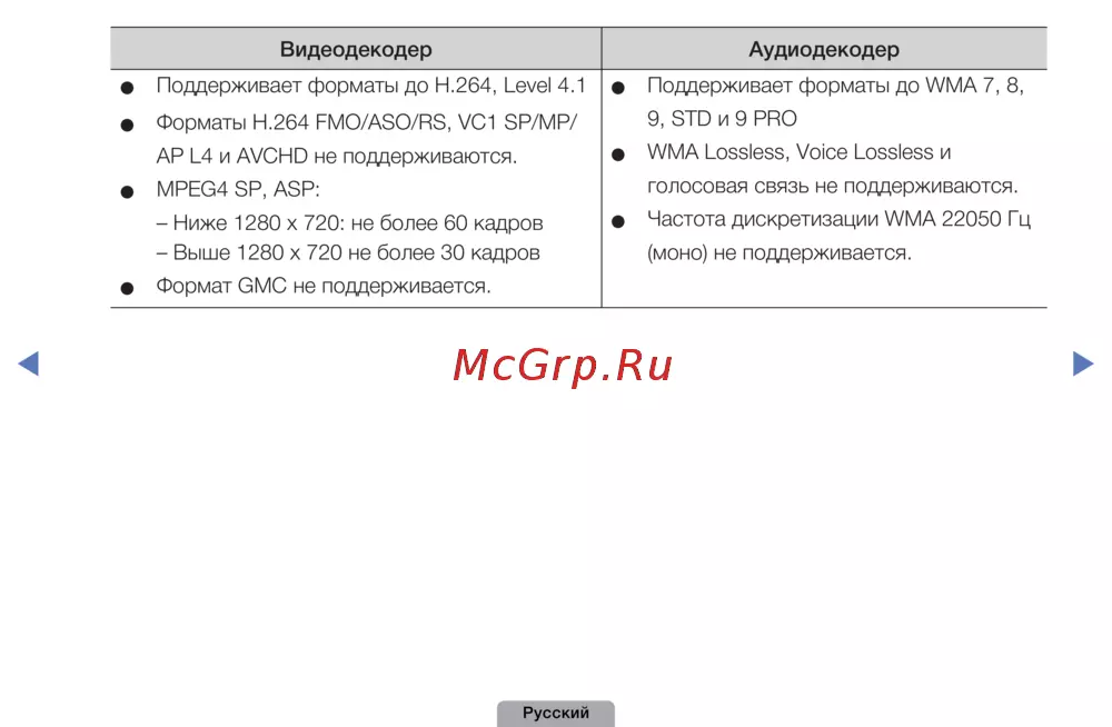 Форматы H.264 FMO/ASO/RS, VC1 SP/MP/