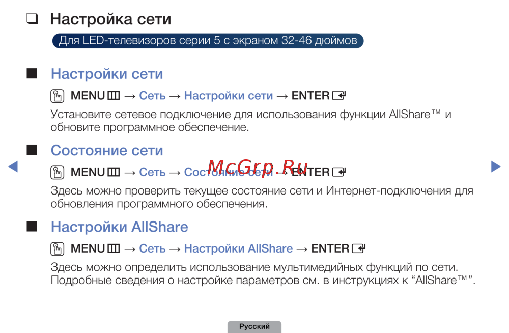 - Существует три способа подключения телевизора к локальной сети с помощью кабеля p.59