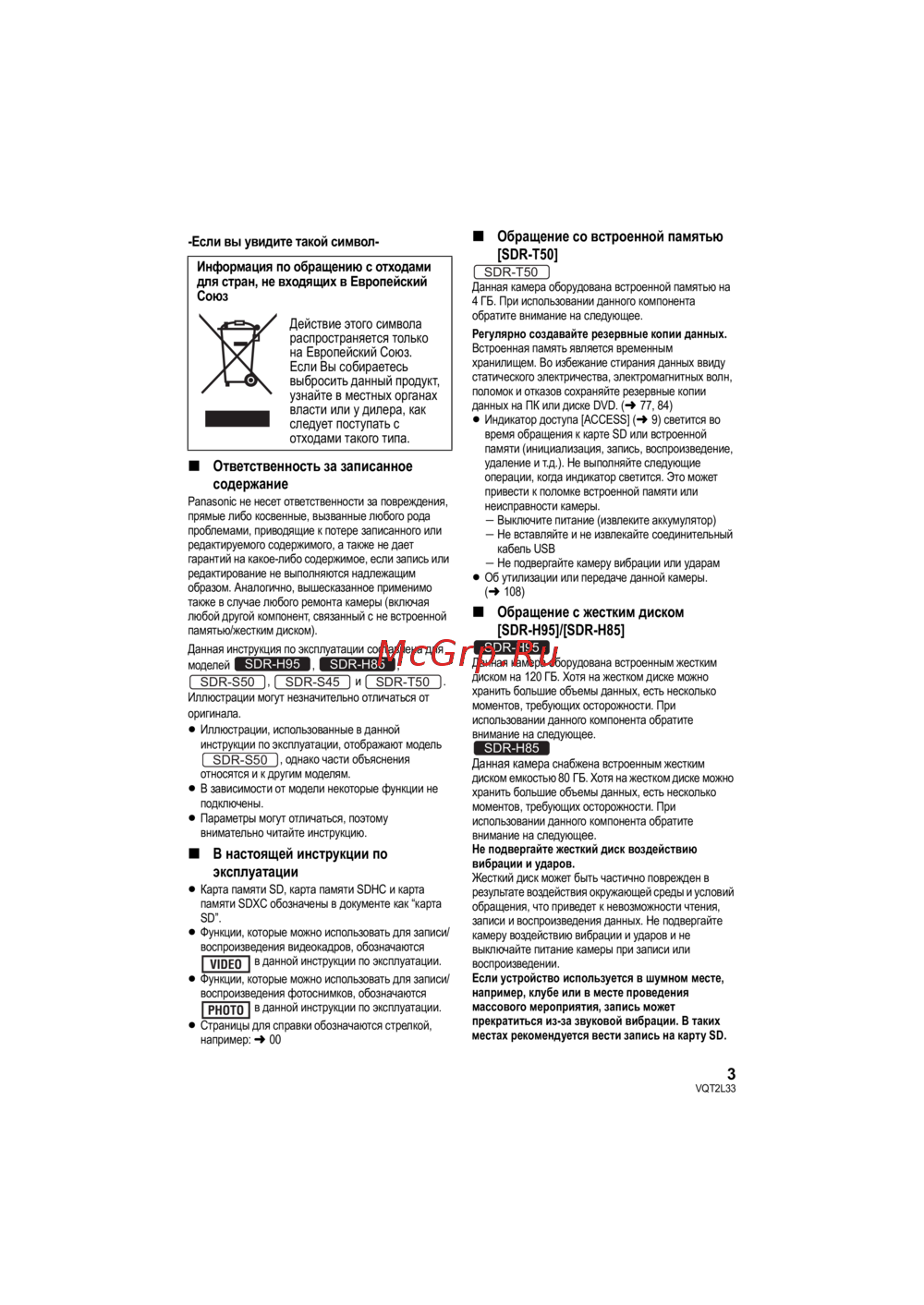 Panasonic SDR-H100EEРуководство по эксплуатации -