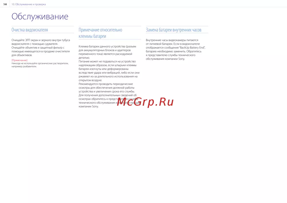 - Не накрывайте видеокамеру при эксплуатации p.166