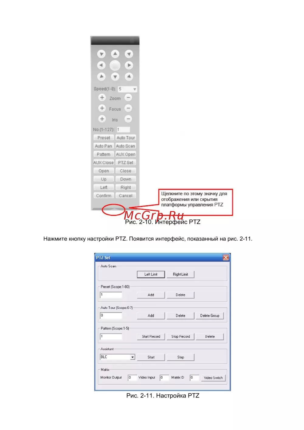 Нажмите кнопку настройки PTZ. Появится интерфейс, показанный на рис. 2-11.