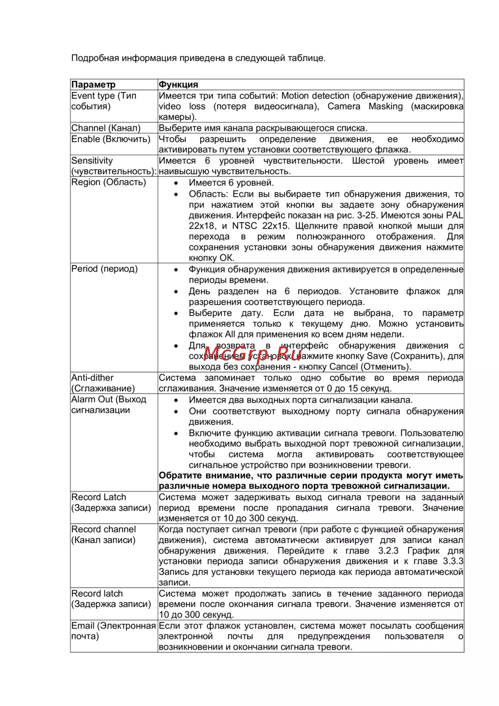 установки периода записи обнаружения движения и к главе 3.3.3