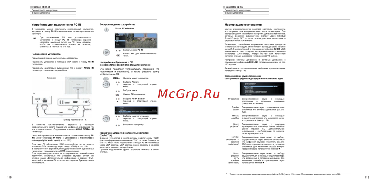 стр.151) могут быть подключены к гнезду PC IN телевизора