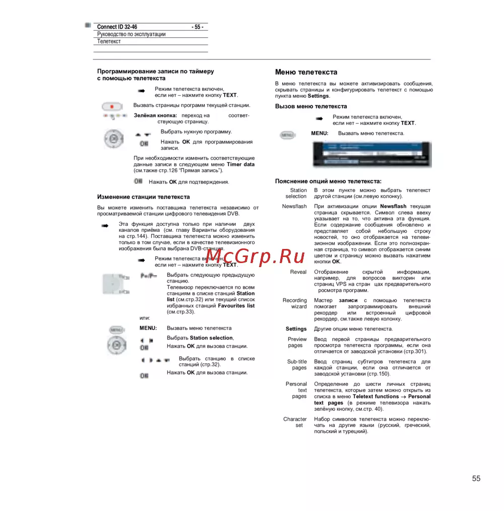 Набор символов телетекста можно переклю-