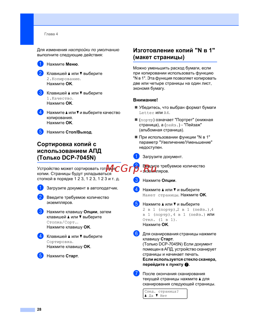 ![Brother DCP-7030R [34/107] Сортировка копий с использованием апд только dcp 7045n](/views2/1009301/page34/bg22.png)