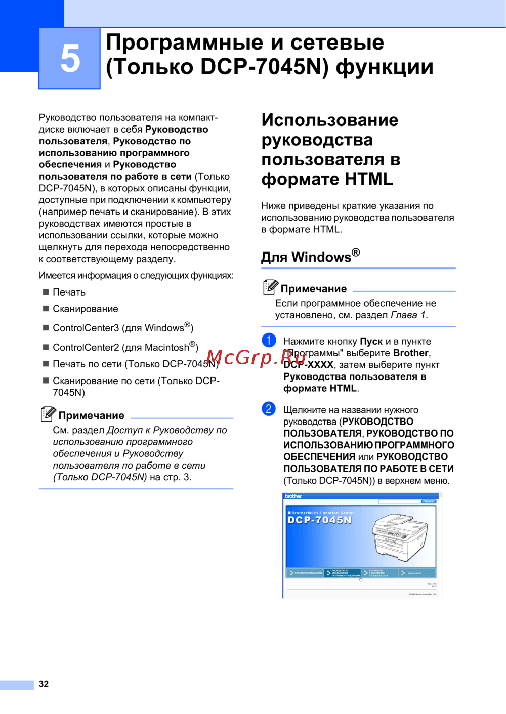 - Программные и сетевые tолько dcp 7045n функции 32 p.5