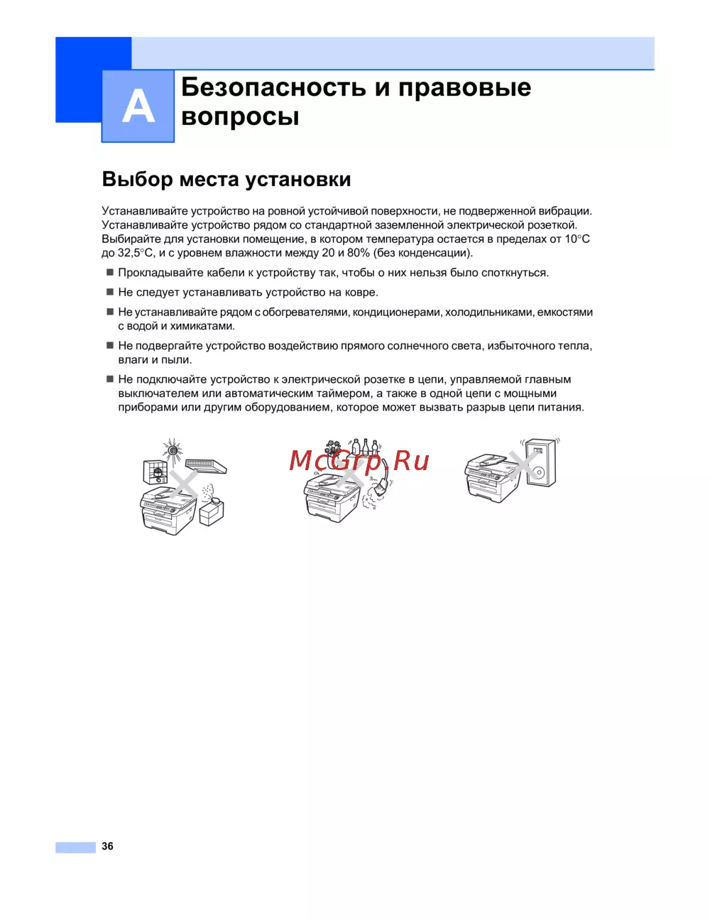 ![Brother DCP-7030R [42/107] Выбор места установки](/views2/1009301/page42/bg2a.png)
