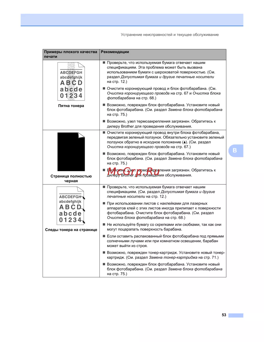 Brother DCP-7030R — руководство по устранению неисправностей печати: 53 B и другие проблемы [59/107]