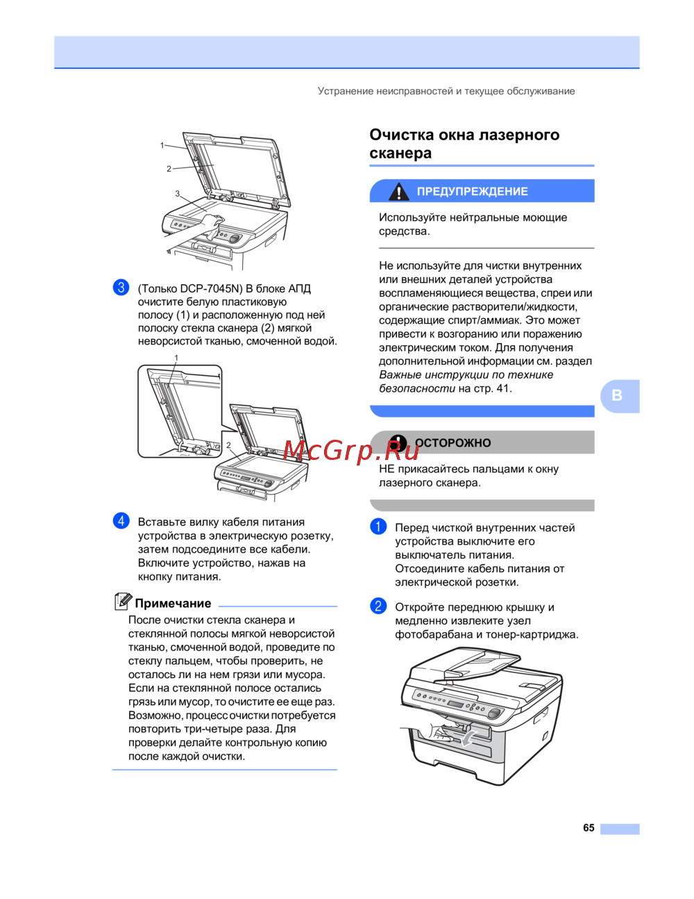 Brother DCP-7030R — инструкция по чистке сканеров с предупреждениями [71/107]