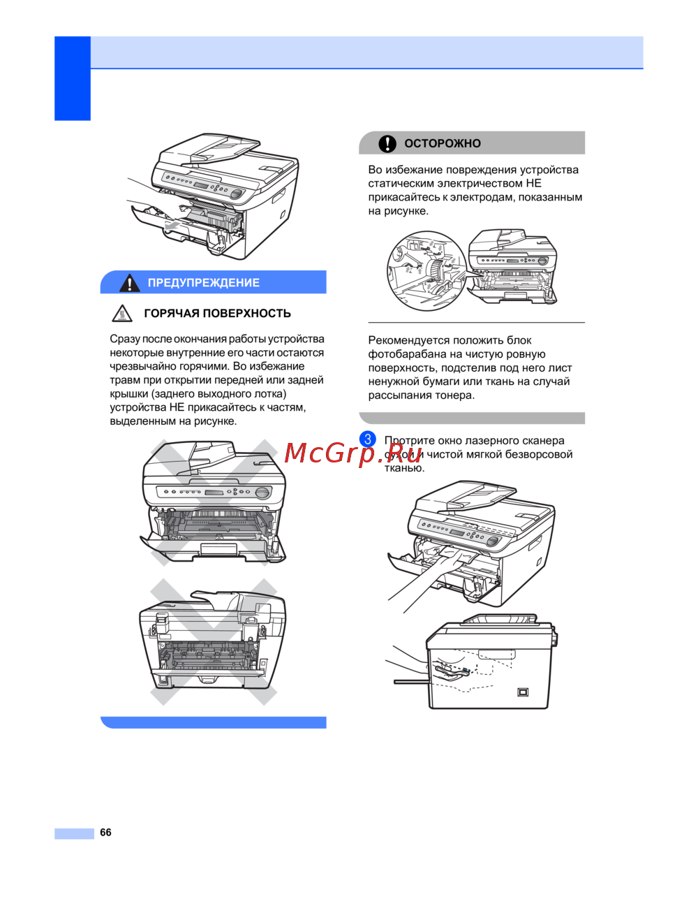 Brother DCP-7030R — безопасность при работе с устройством: предупреждения и рекомендации [72/107]