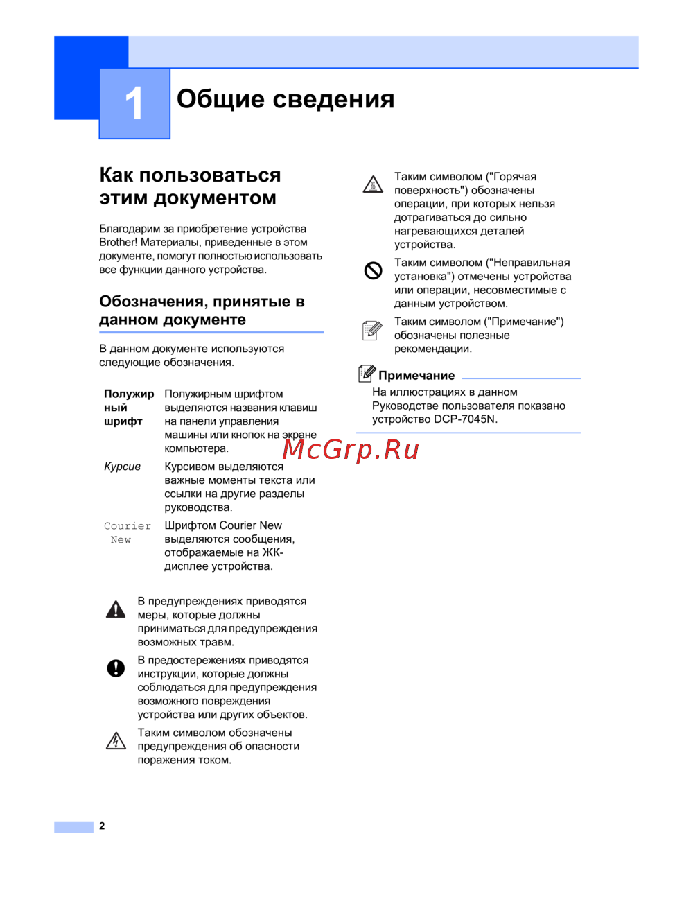 - Руководство пользователя dcp 7030 dcp 7032 dcp 7045n p.1