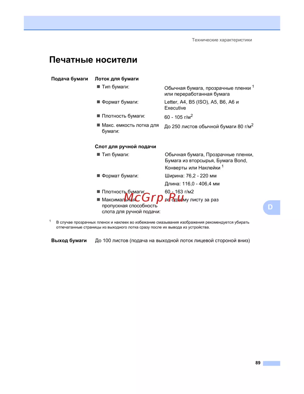 ![Brother DCP-7030R [95/107] Печатные носители](/views2/1009301/page95/bg5f.png)