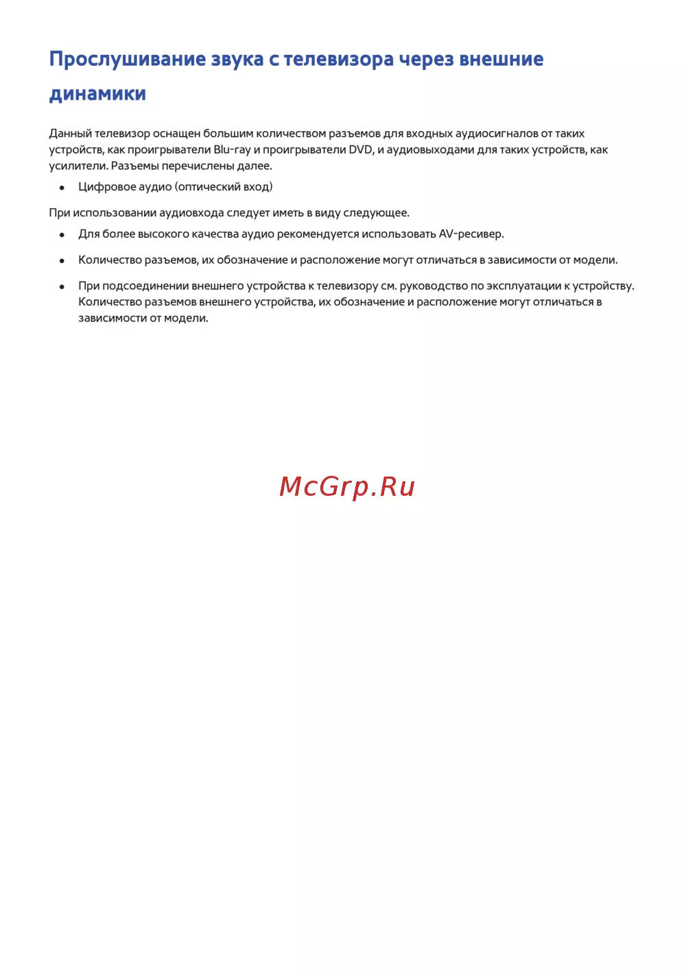 Для более высокого качества аудио рекомендуется использовать AV-ресивер.