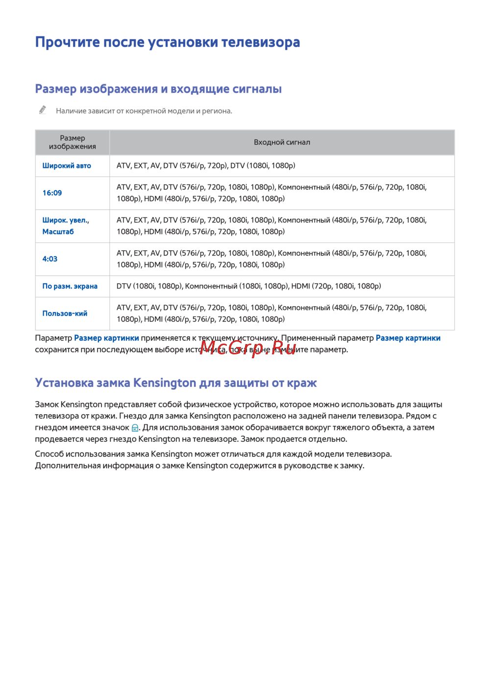 - Размер изображения и входящие сигналы p.138