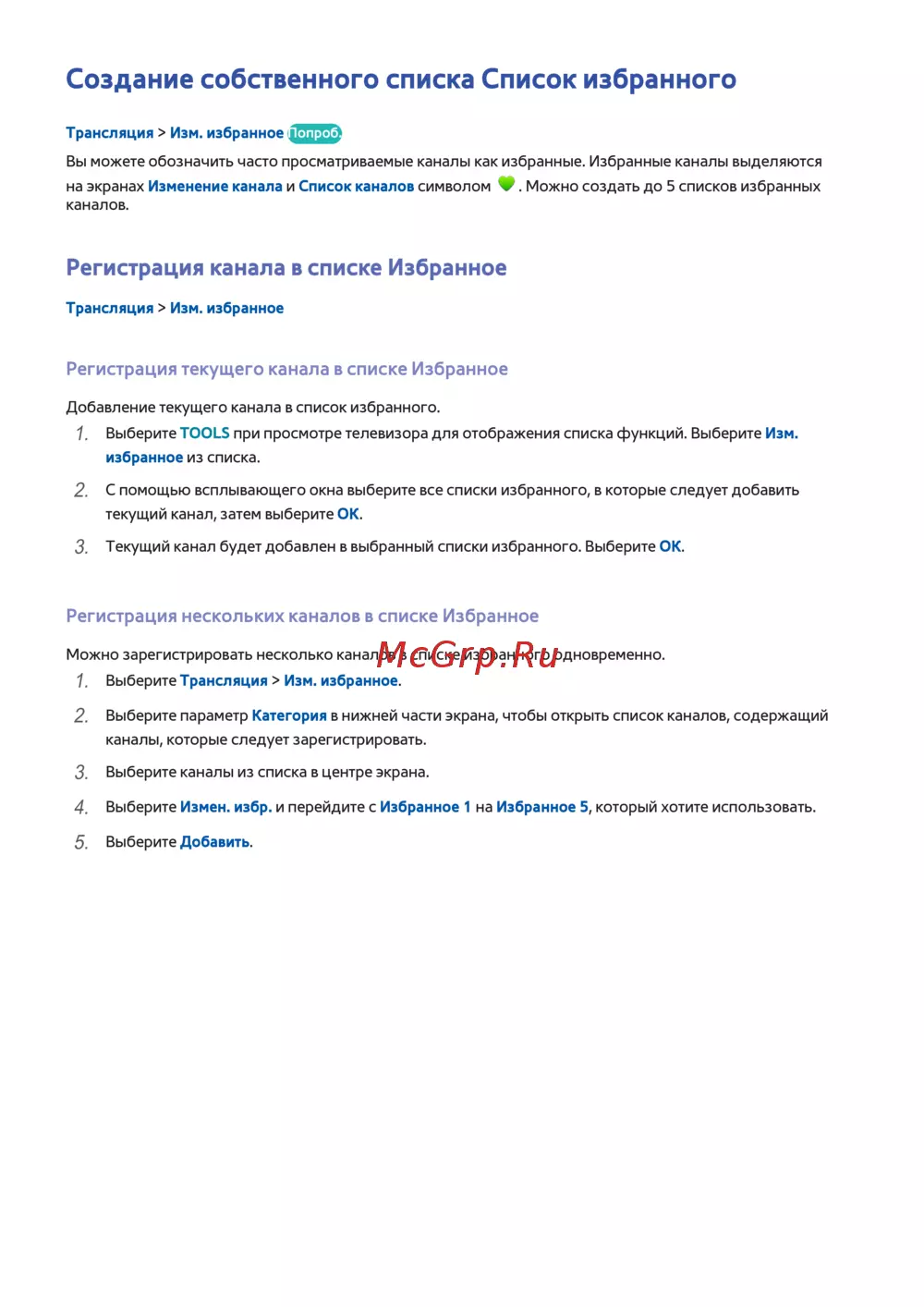 Вы можете обозначить часто просматриваемые каналы как избранные. Избранные каналы выделяются