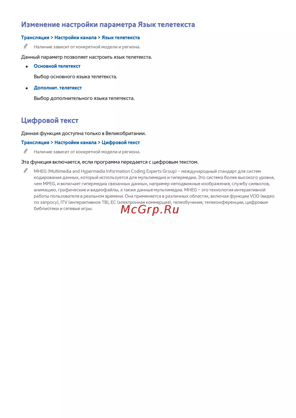 Узнайте, как настроить язык телетекста и активировать цифровой текст в трансляциях. Информация о параметрах и их доступности в разных регионах.