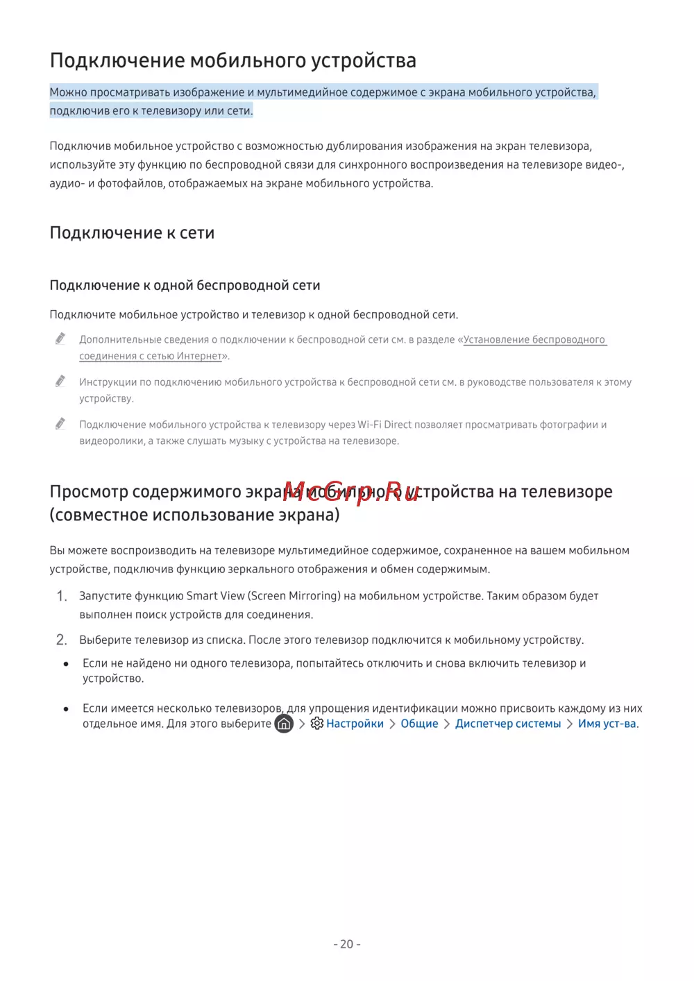 " Инструкции по подключению мобильного устройства к беспроводной сети см. в руководстве пользователя к этому