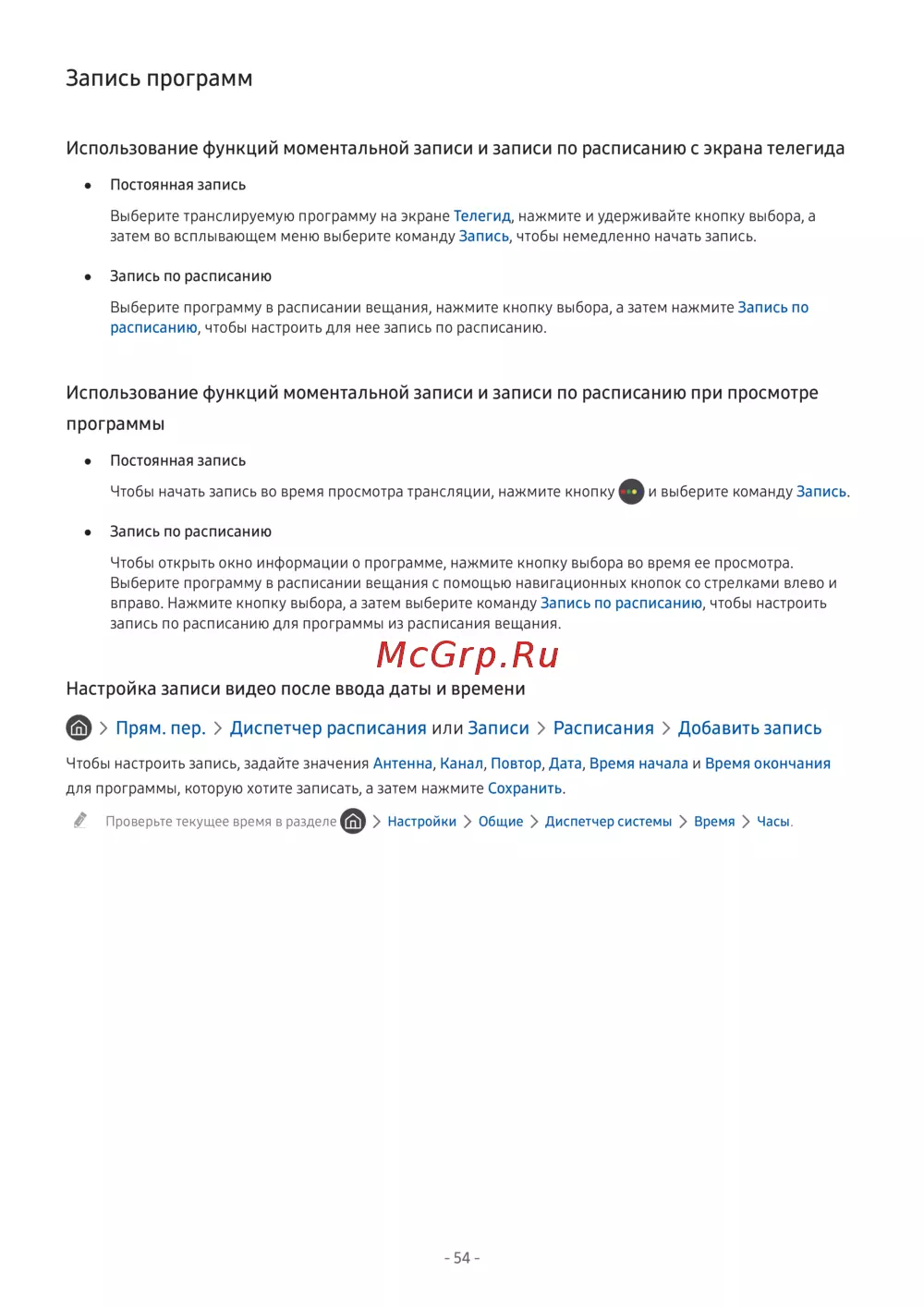 - Настройка функции просмотр по расписанию p.144