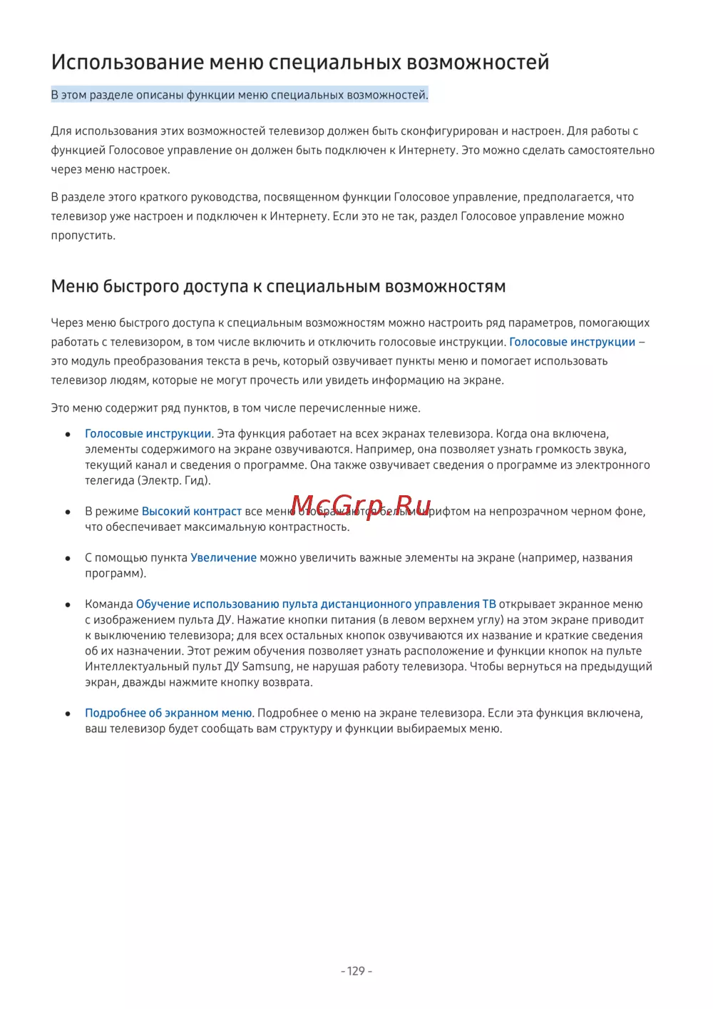 - Инструкции по использованию специальных возможностей p.133