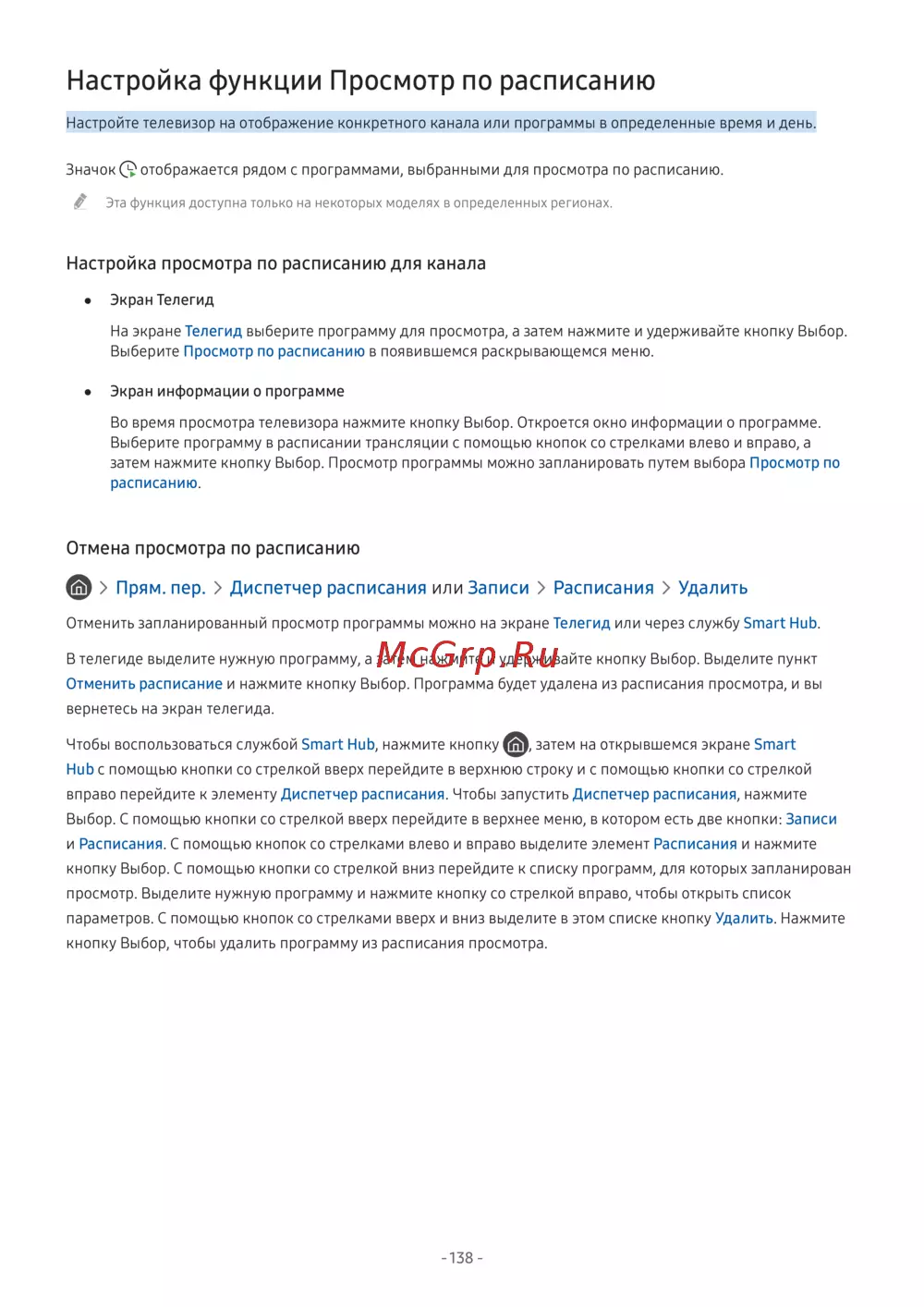 Отменить запланированный просмотр программы можно на экране Телегид или через службу Smart Hub.