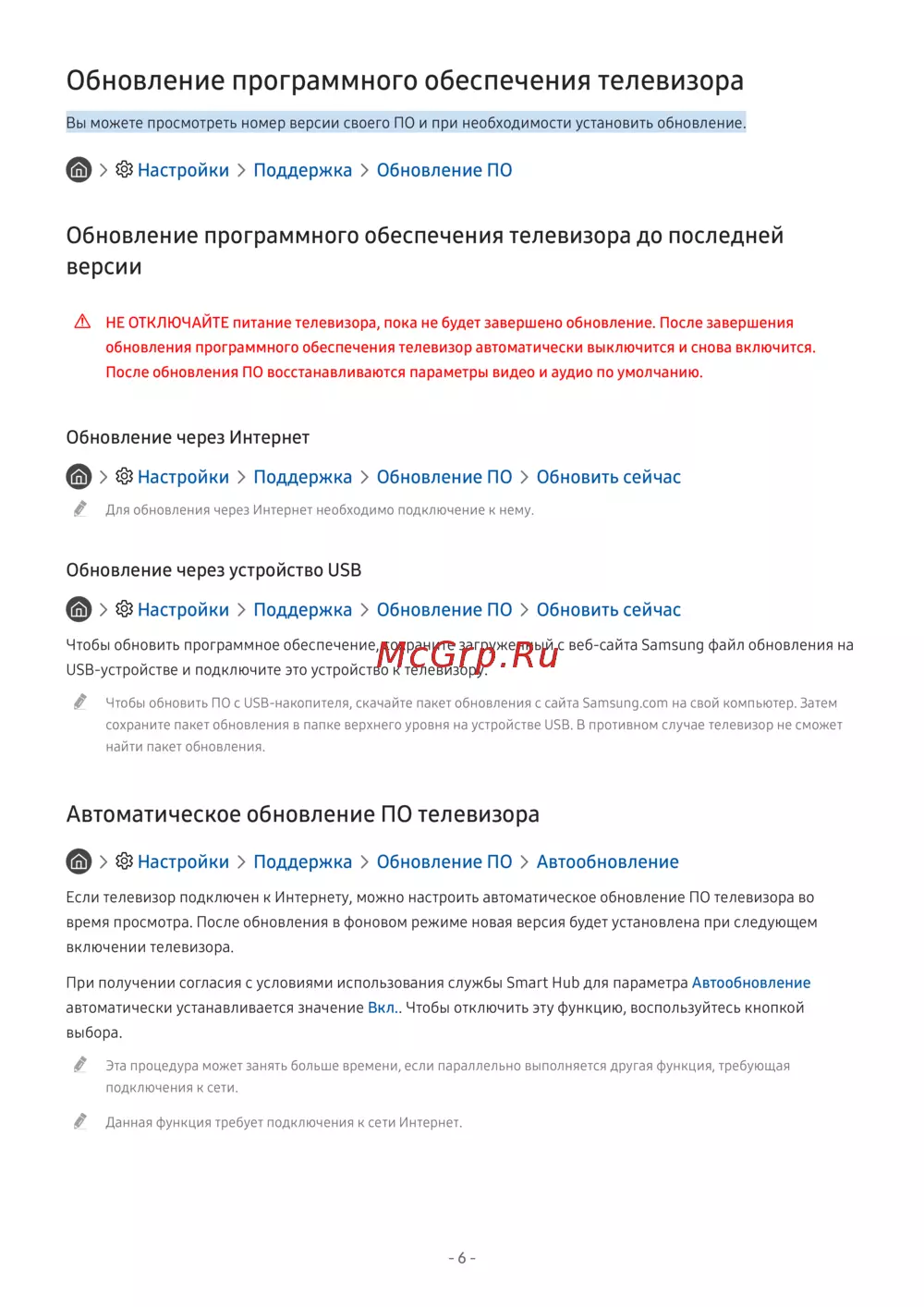 " Чтобы обновить ПО с USB-накопителя, скачайте пакет обновления с сайта Samsung.com на свой компьютер. Затем