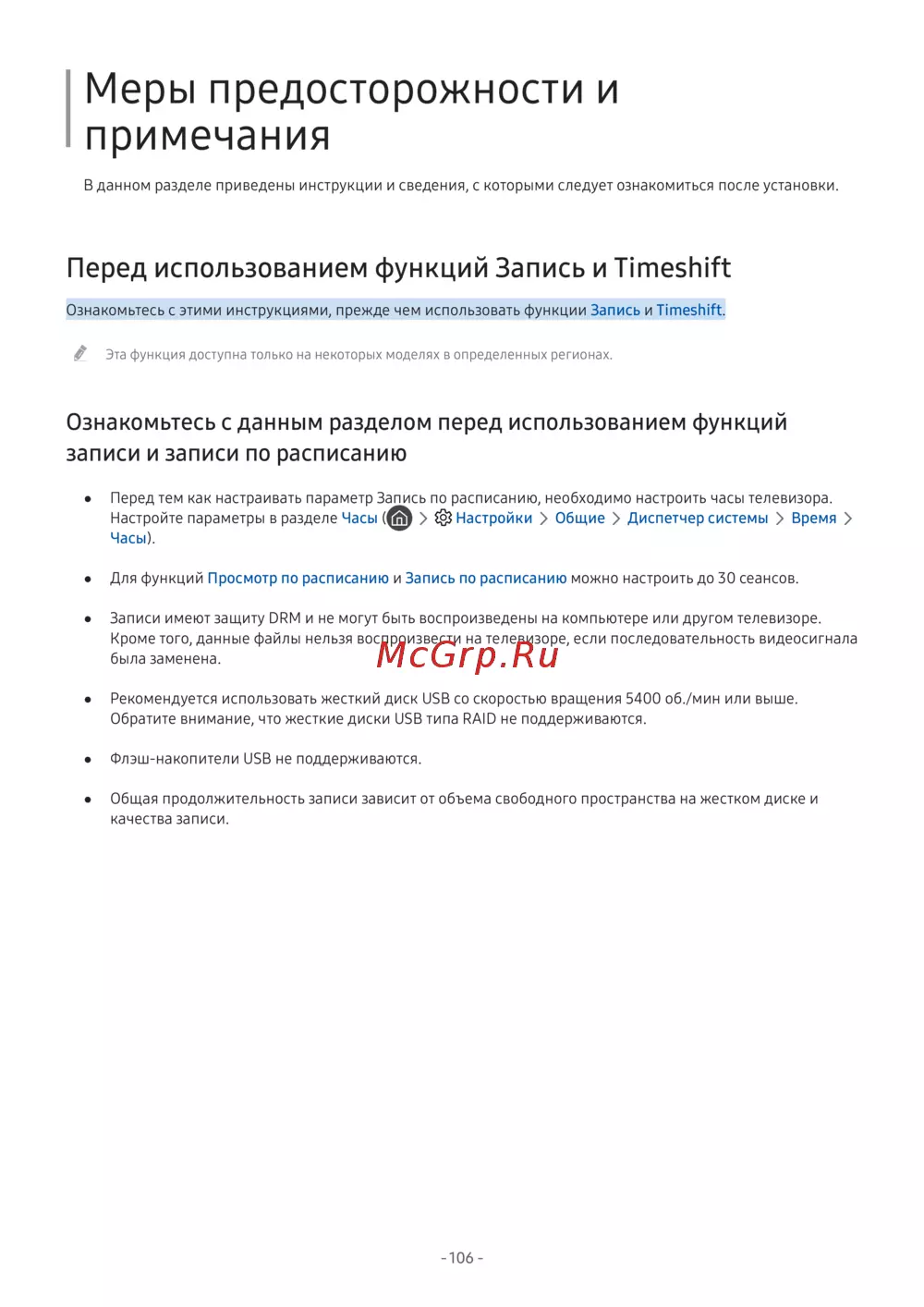 Ознакомьтесь с этими инструкциями, прежде чем использовать функции Запись и Timeshift.