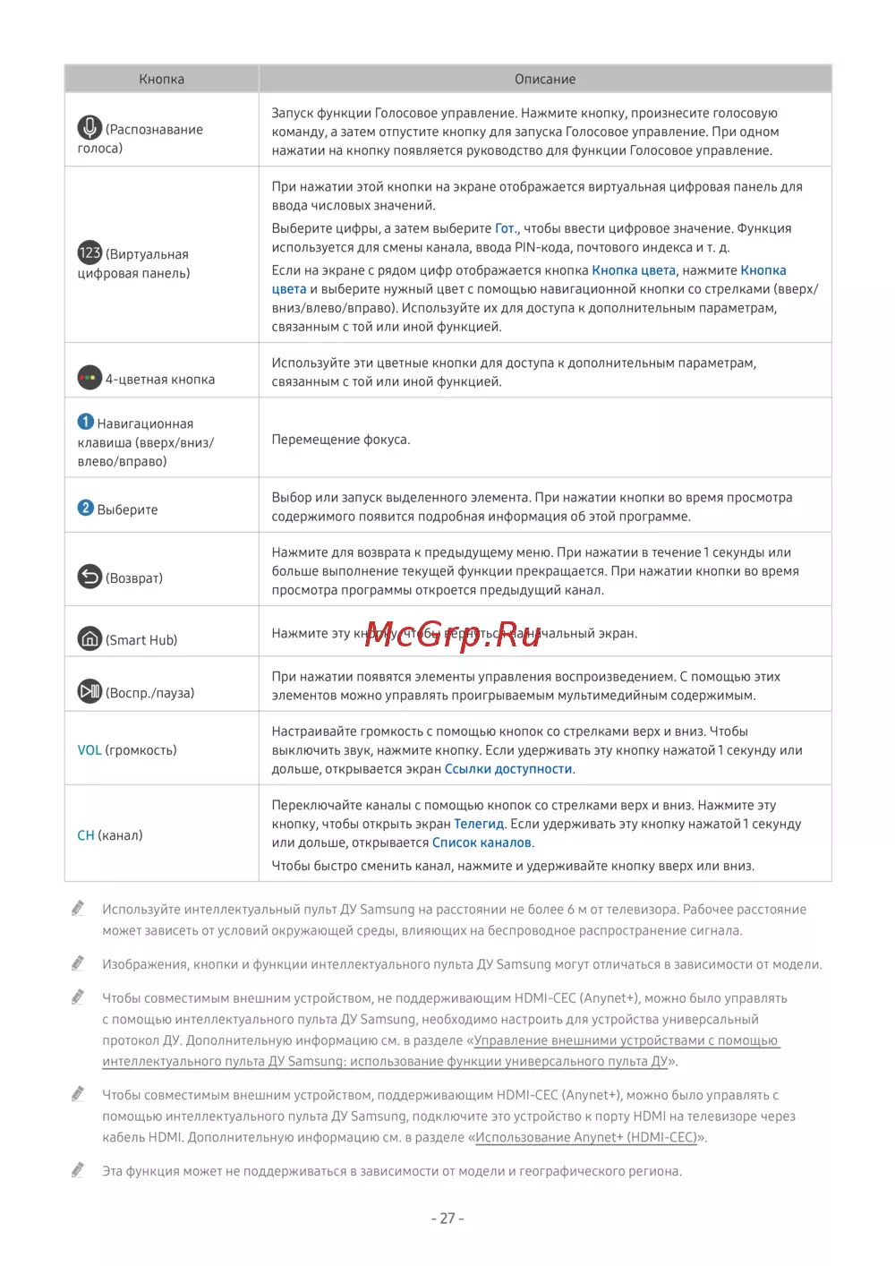 - Описание интеллектуального пульта ду samsung p.133