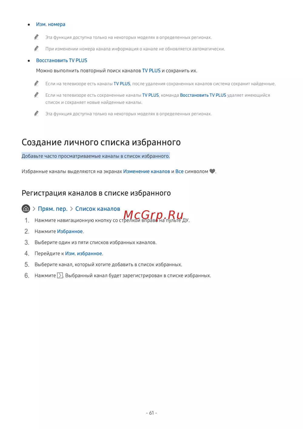 - Выбор и просмотр только тех каналов которые внесены в списки избранного p.147