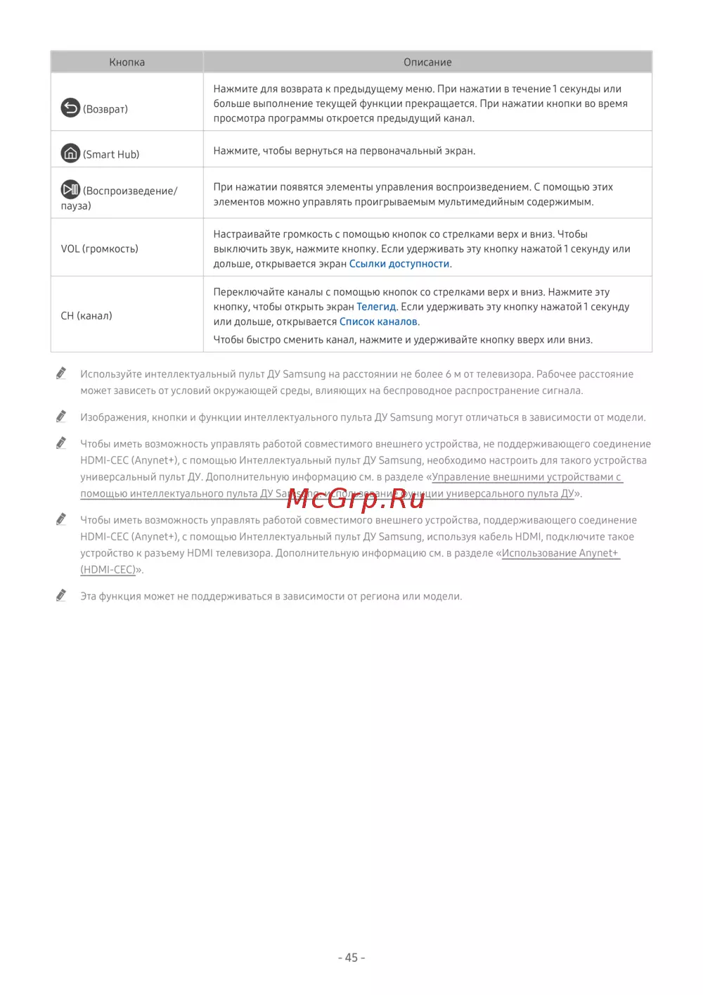 - Изображения кнопки и функции интеллектуального пульта ду samsung могут отличаться в p.10