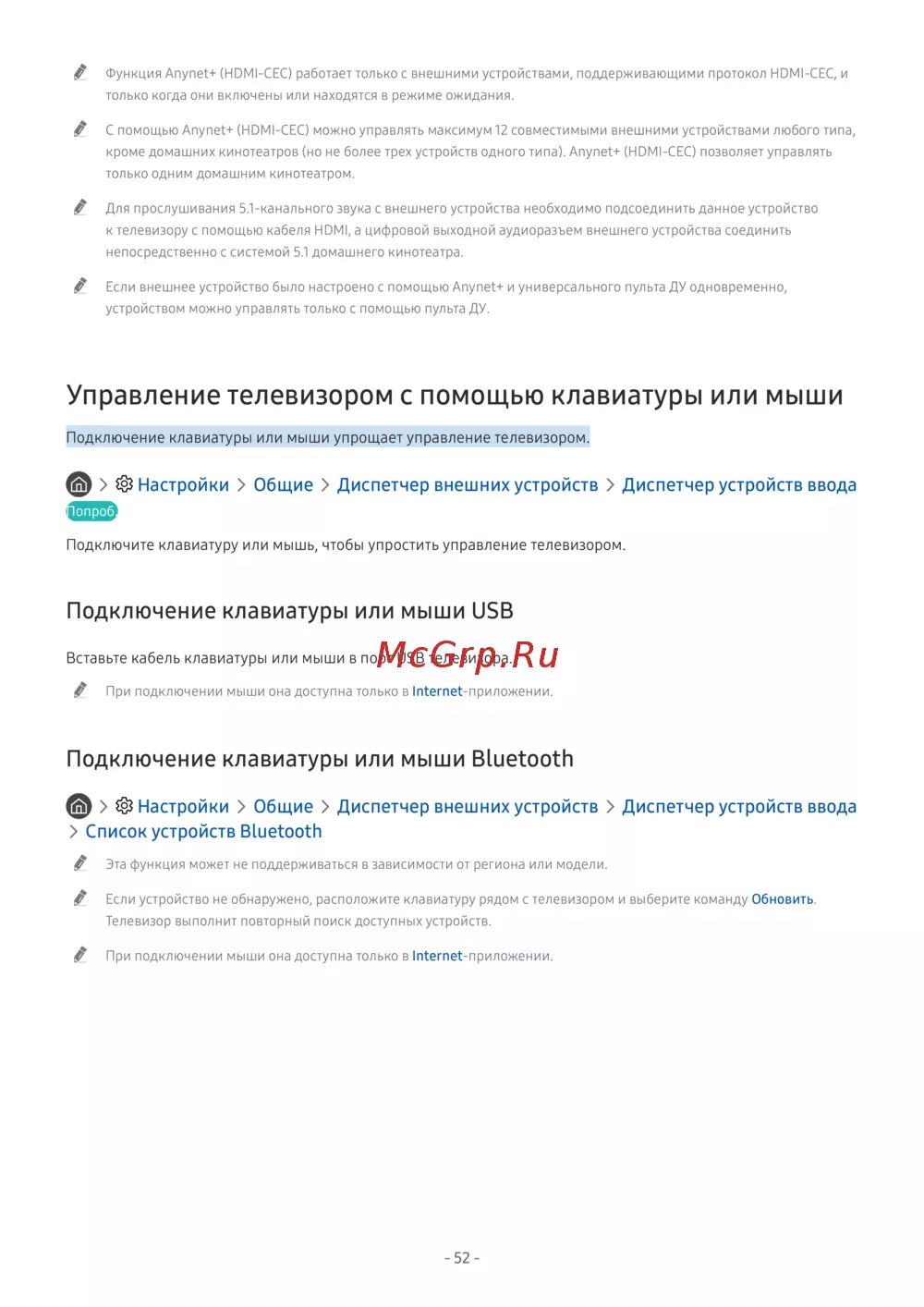 кроме домашних кинотеатров (но не более трех устройств одного типа). Anynet+ (HDMI-CEC) позволяет управлять