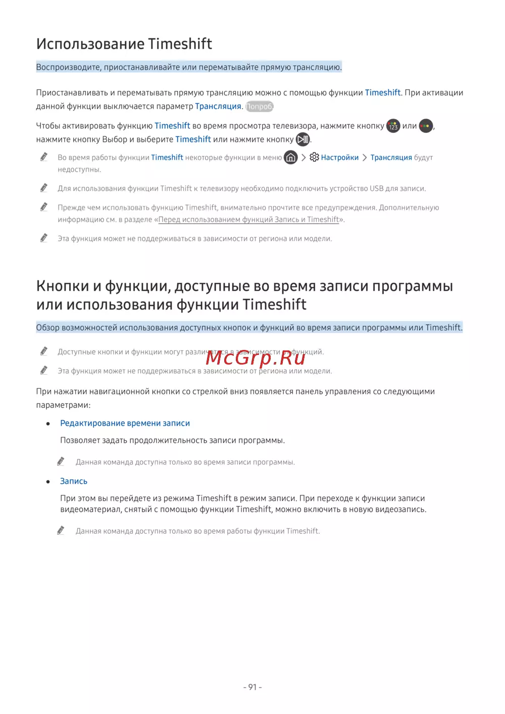 информацию см. в разделе «Перед использованием функций Запись и Timeshift».