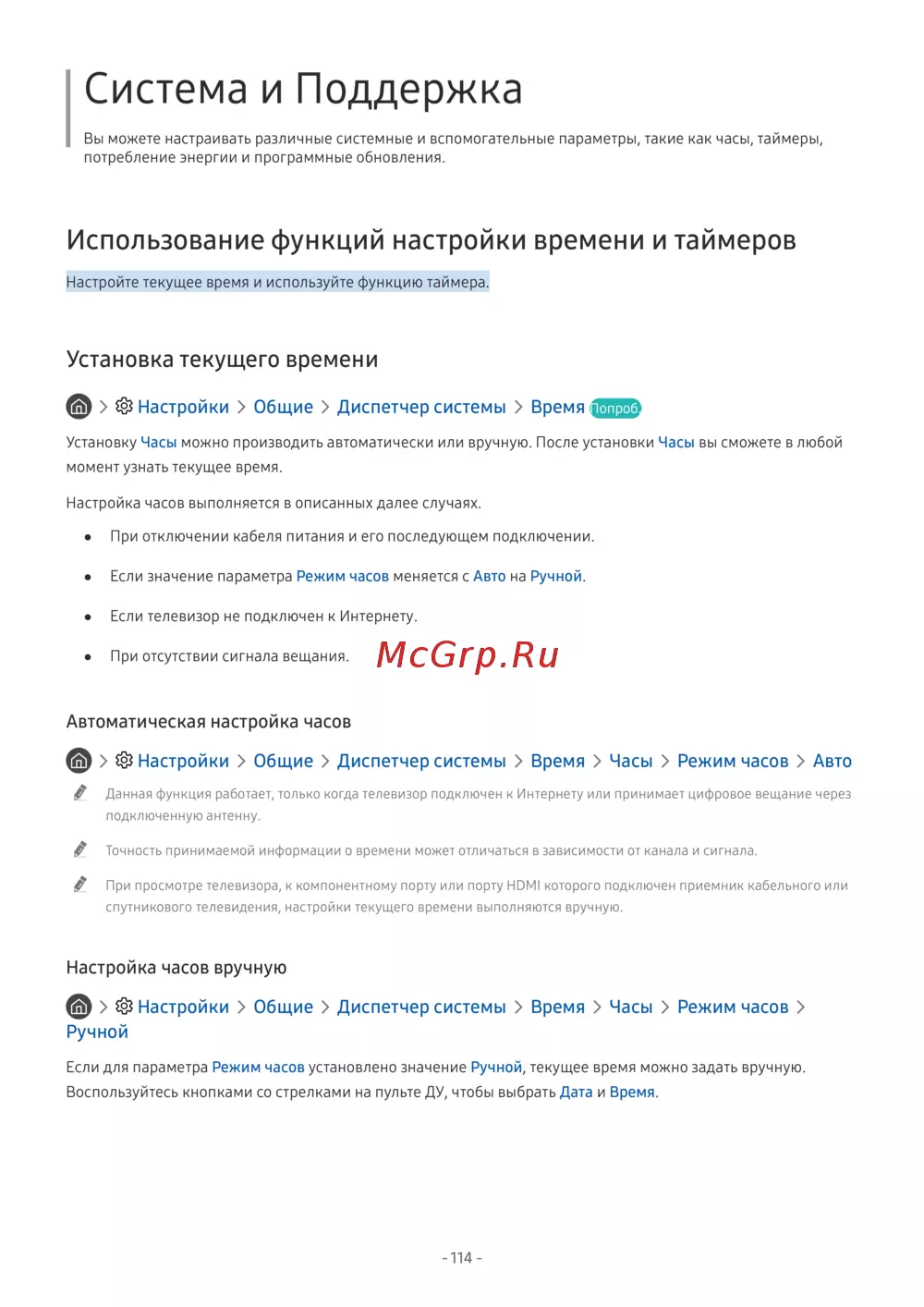 ● Если значение параметра Режим часов меняется с Авто на Ручной.