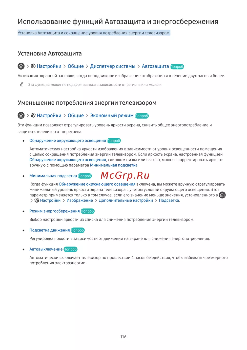 Установка Автозащита и сокращение уровня потребления энергии телевизором.